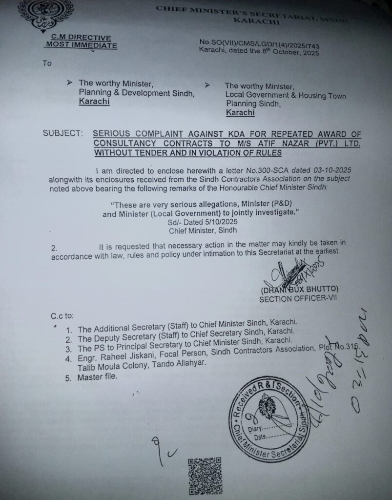 کےڈی اے میں 11 ارب 33 کروڑ روپے کے ٹھیکے بغیر ٹینڈر کے دینے کا انکشاف